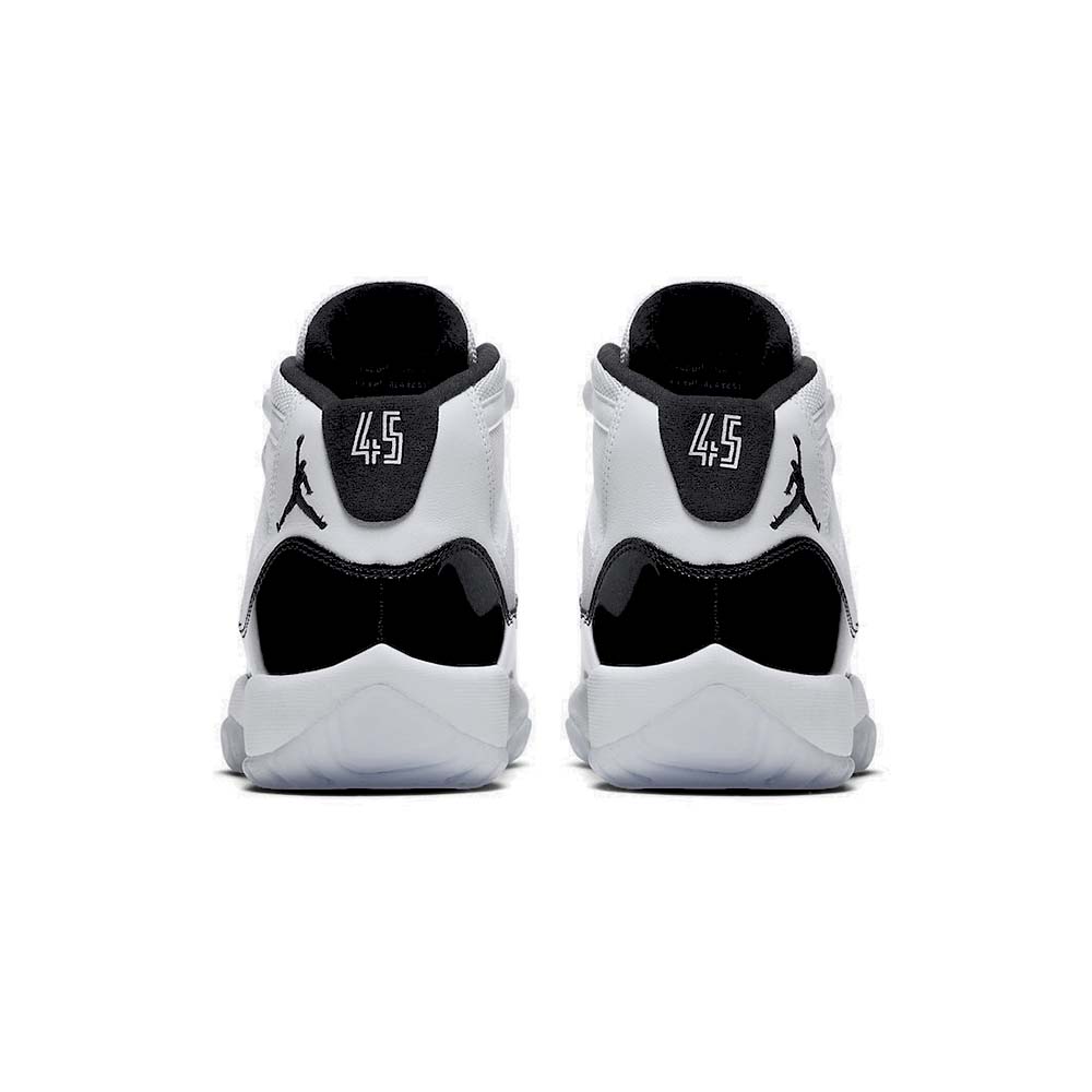 The Air Jordan 11 GS ¡°Concord 2018¡± is the grade school-sized release of one of the most important sneakers of all time. This retro features the beloved design in its most accurate form since the original that Michael Jordan wore on court in 1996. The Air Jordan 11 GS ¡°Concord 2018¡± features the same white ballistic mesh and leather upper with shining black patent leather construction as the men¡¯s sizing. The kids¡¯ Concord colorway also features ¡°45¡± on each heel, referencing the original pair Jordan debuted in the 1995 NBA Playoffs. Michael Jordan wore number 45 when he returned to the NBA after his first retirement in 1994, and the number was on the very first pairs of the Air Jordan 11.?